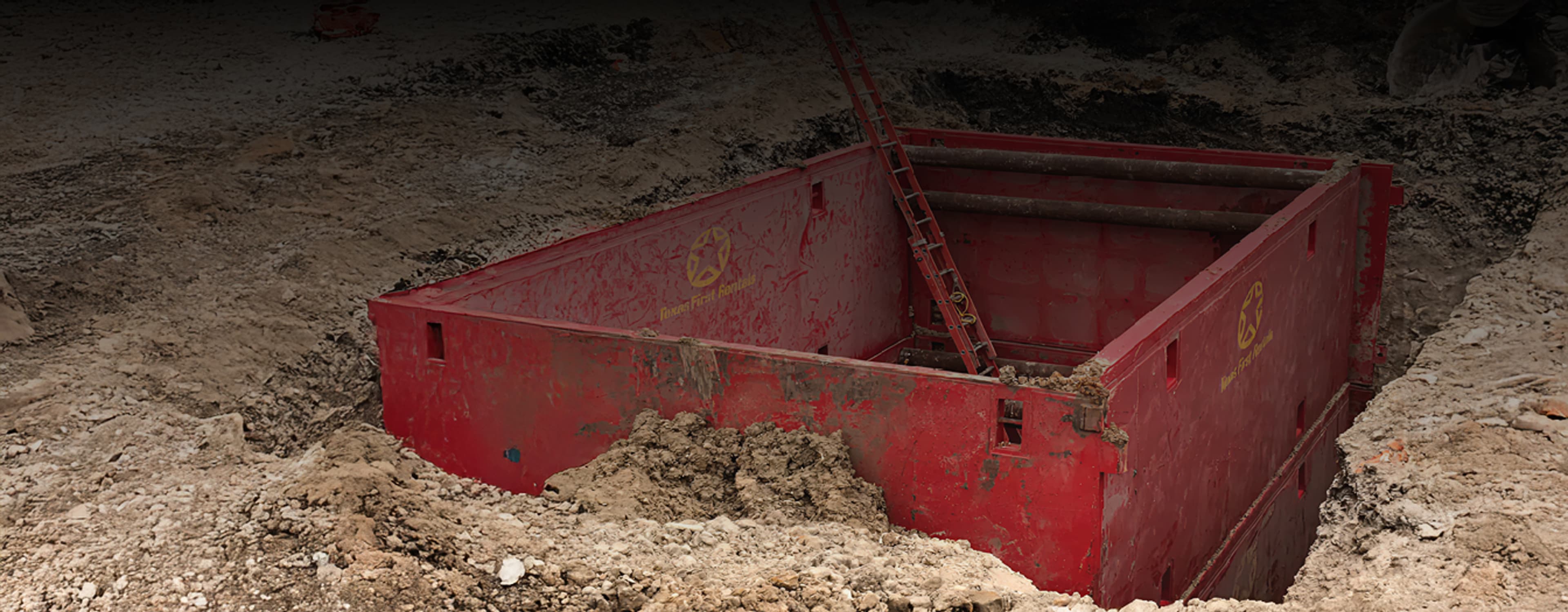 Las cajas de acero para zanjas ofrecen protección de capacidad media con opciones de altura de hasta 10' y longitudes de hasta 24'. Estas cajas con certificación OSHA brindan escudo vital durante excavaciones de servicios públicos, instalación de tuberías y otros trabajos de zanja profunda en las principales regiones de Texas.